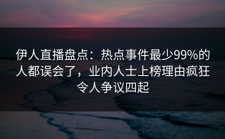 伊人直播盘点:热点事件最少99%的人都误会了,业内人士上榜理由疯狂令人争议四起